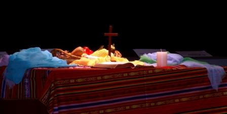Así, se va armando la mesa/altar, mientras una voz en off lee la invocación abajo escrita: